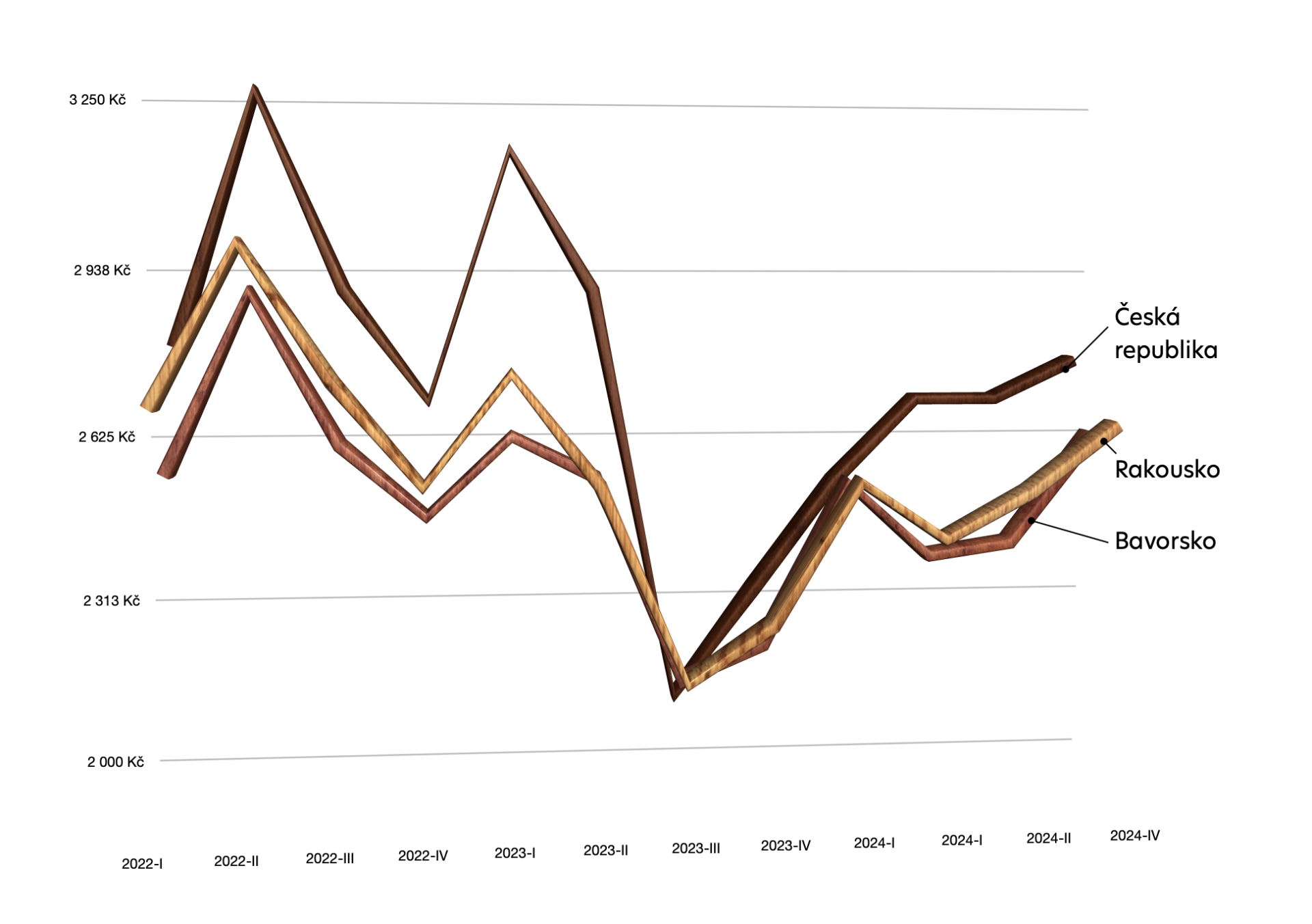 Ačkoliv ministr zemědělství tvrdí, že je cena surového dřeva srovnatelná s německým či rakouským trhem, pilaři oponují, že tomu tak není. „Cena kulatiny v ČR byla v průměru o 7 % vyšší než v Německu či Rakousku, což je pro nás významný rozdíl,“ upřesňuje Ing. Pražan a své tvrzení dokládá daty.